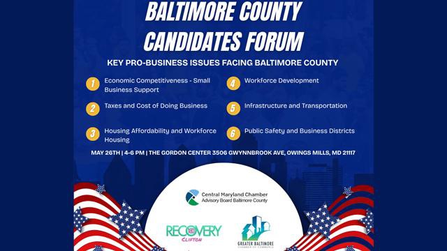 Join the Central Maryland Chamber on May 26 for an important public forum featuring candidates for Baltimore County Council and Baltimore County Executive as they discuss the issues that matter most to businesses, employers, and residents across Baltimore County.